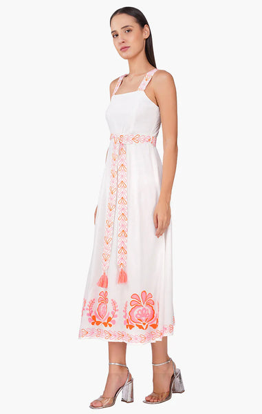AMERICA & BEYOND: Embroidered Square Neck Maxi Dress