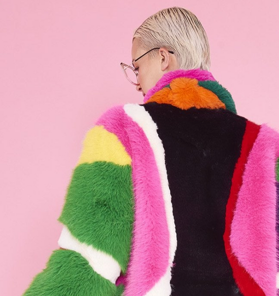 JAYLEY: MIXED FAUX FUR RAINBOW COAT